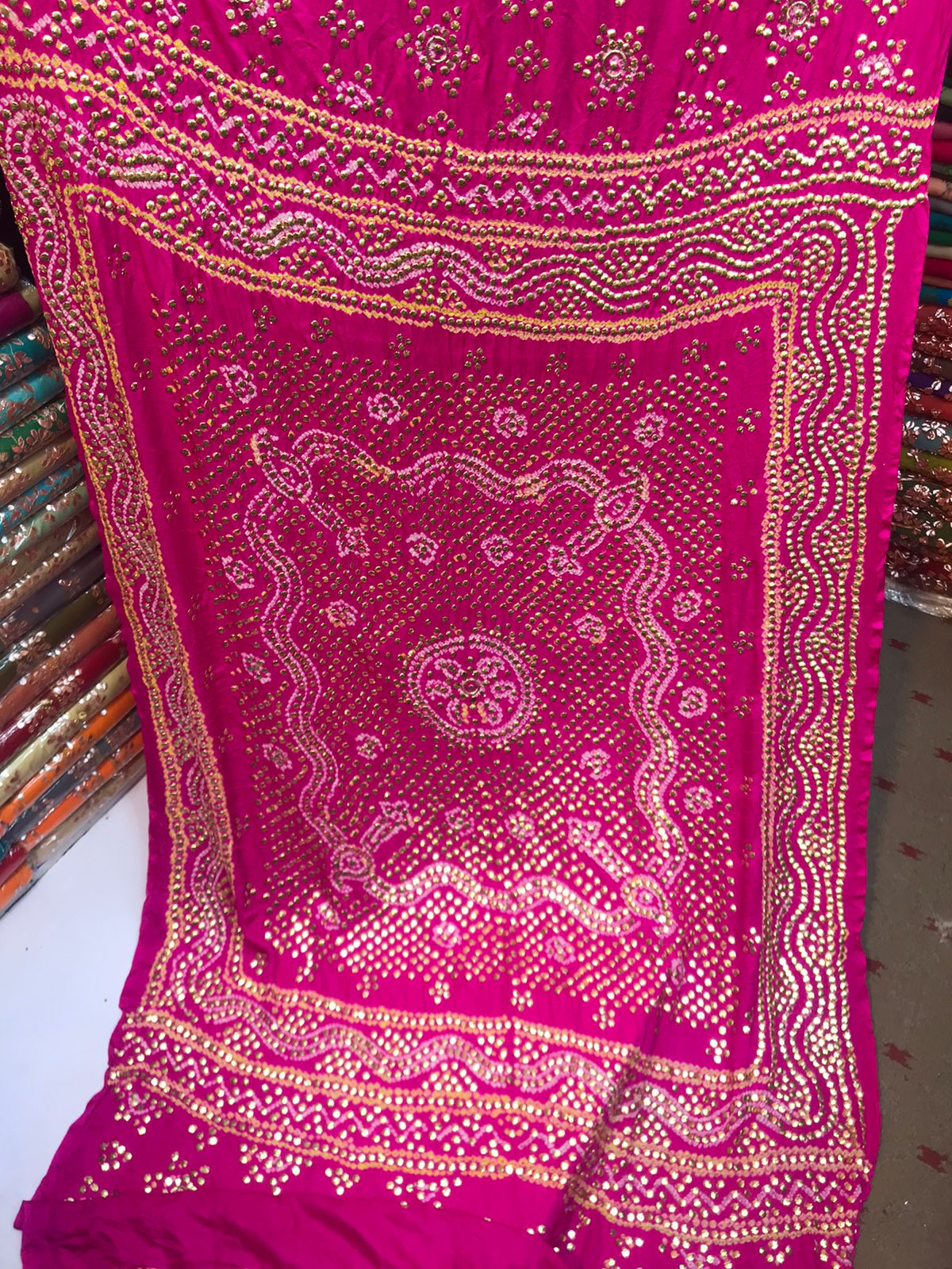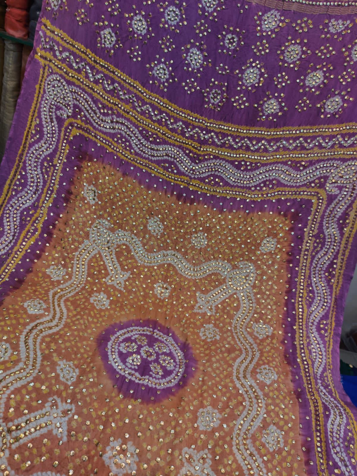 Pure gajji silk 2.75 yards shawl with beautiful n heavy kaamdani and jamawar finishes underneath, finished off with four sided patti.